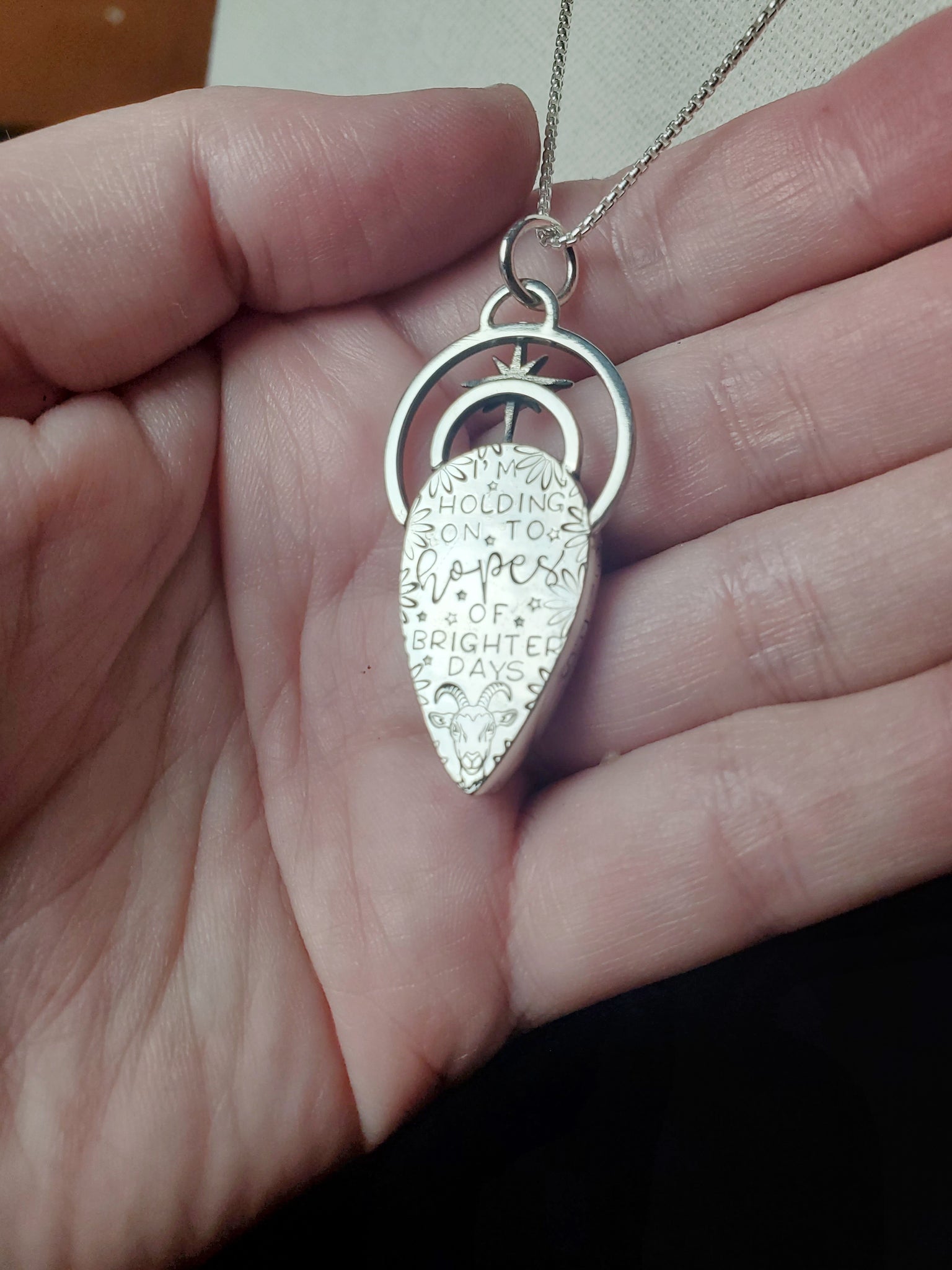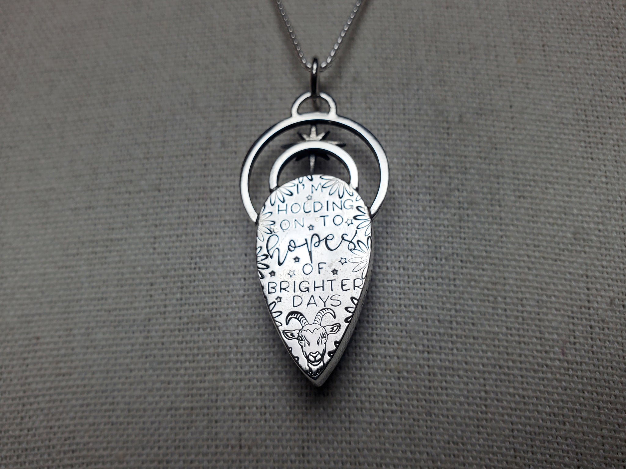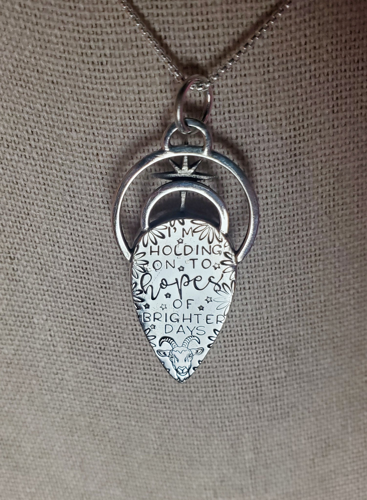 I know I use this lyric a lot, but this is the energy that seems like we need to be channeling the most. I love how this one turned out with the double bail, and the guiding star above. The backside has a goat and the lyric is surrounded by daisies, and the side of the stone has a super subtle "BMFS" running down it!