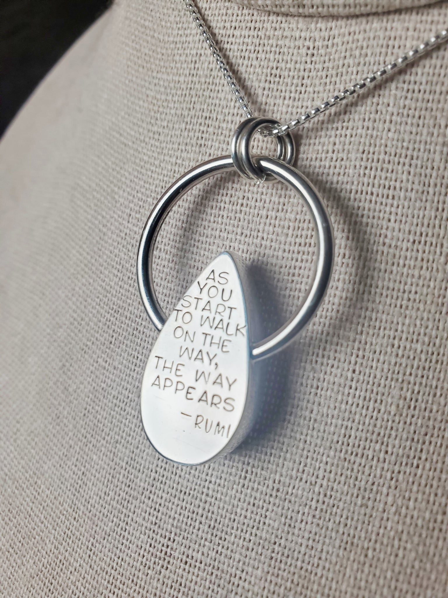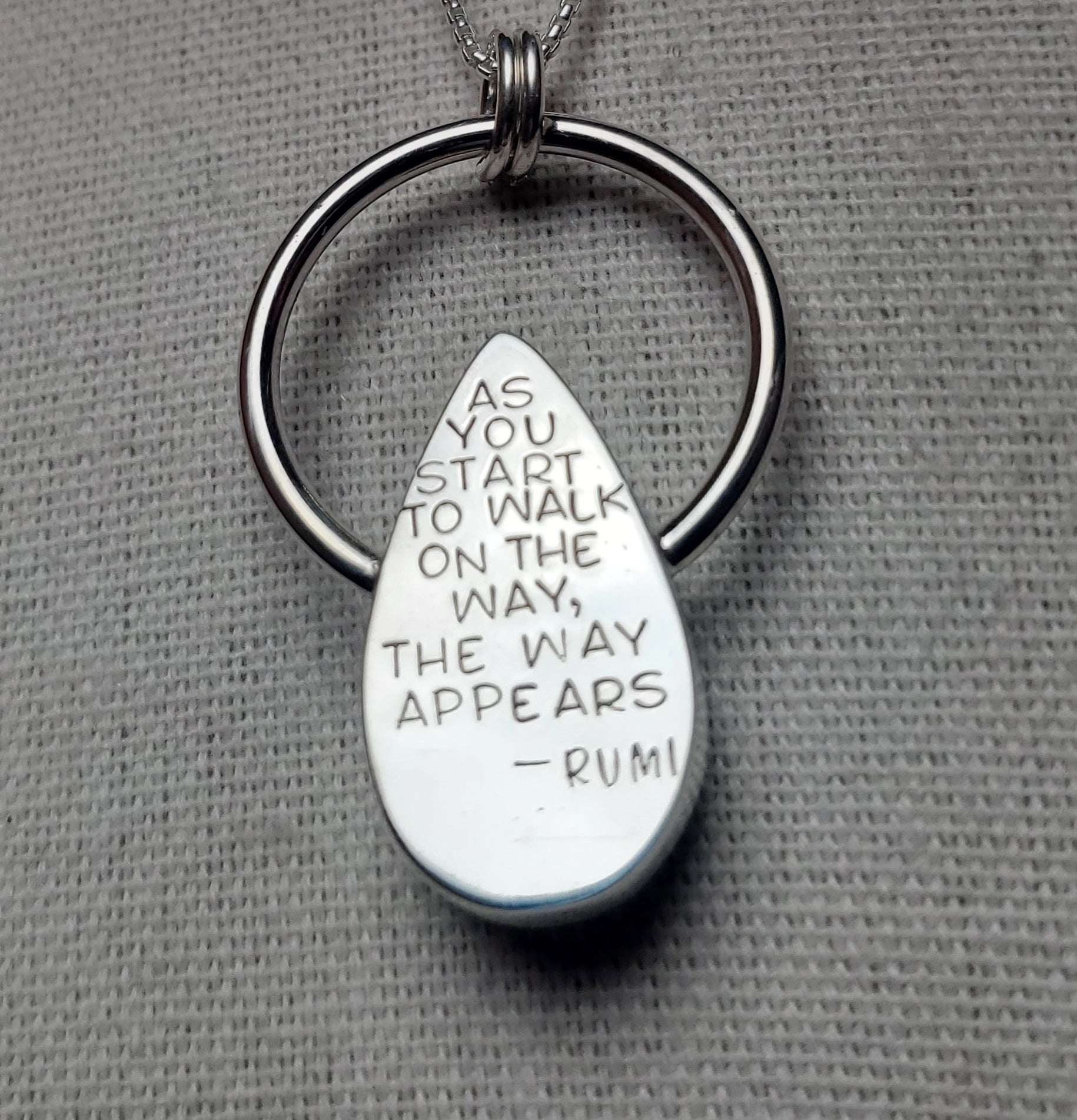 I paired it with a simply, hefty and thick silver bail, and didn't add any design images/distractions to the quote. It's just simple, clean, and lets the stone and the sentiment really shine.