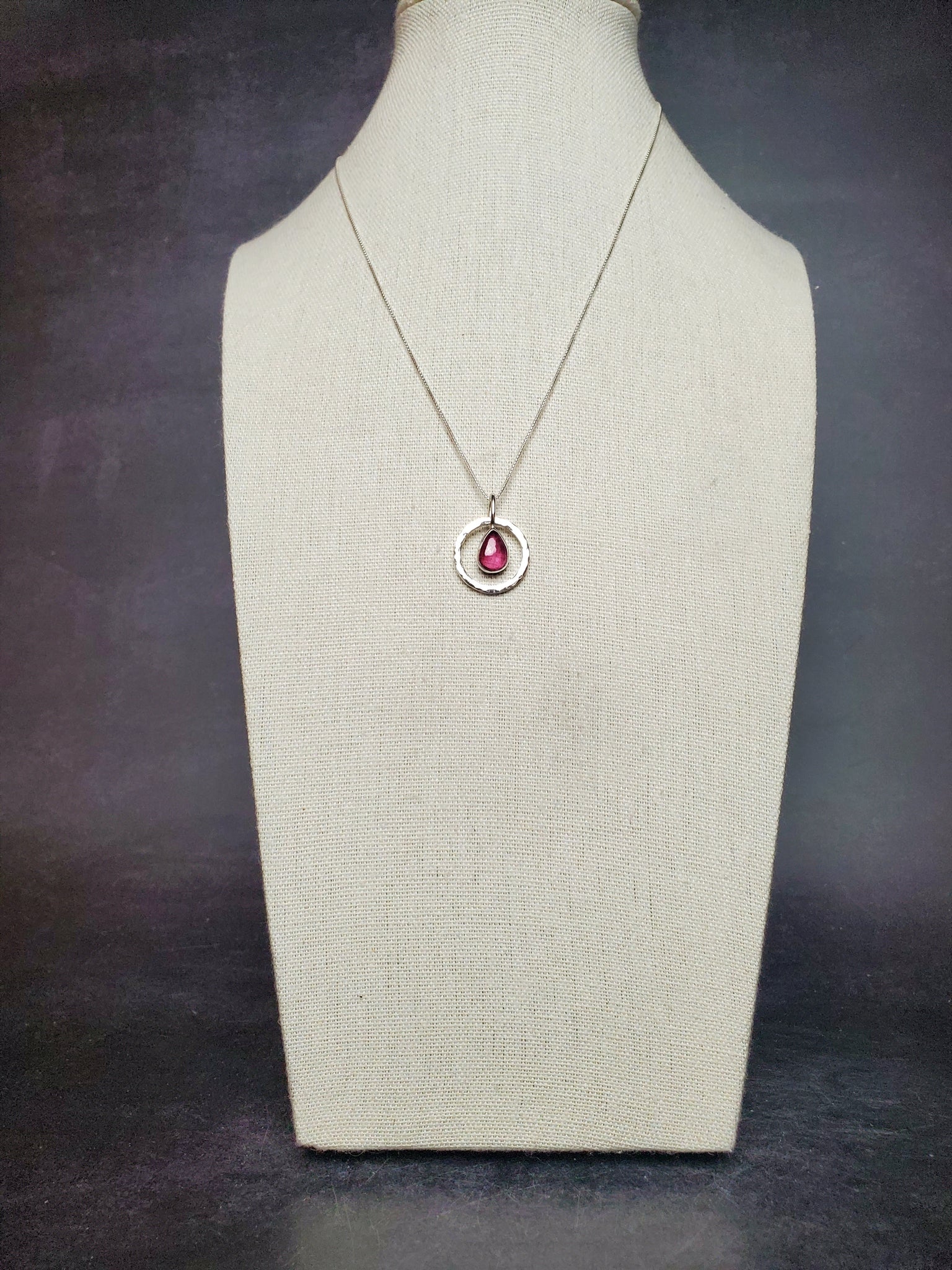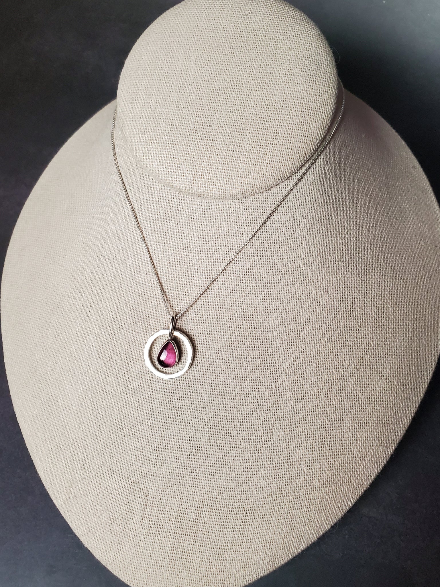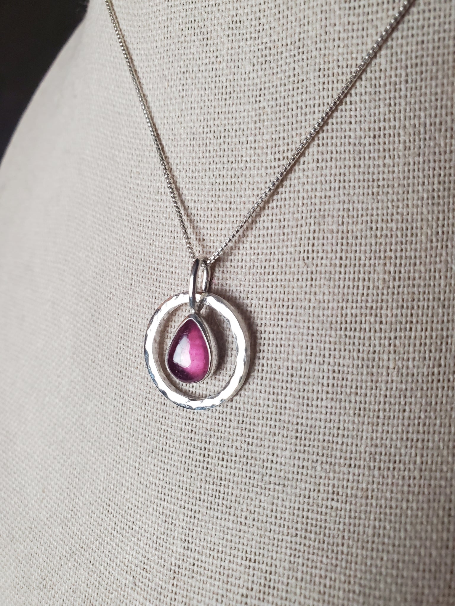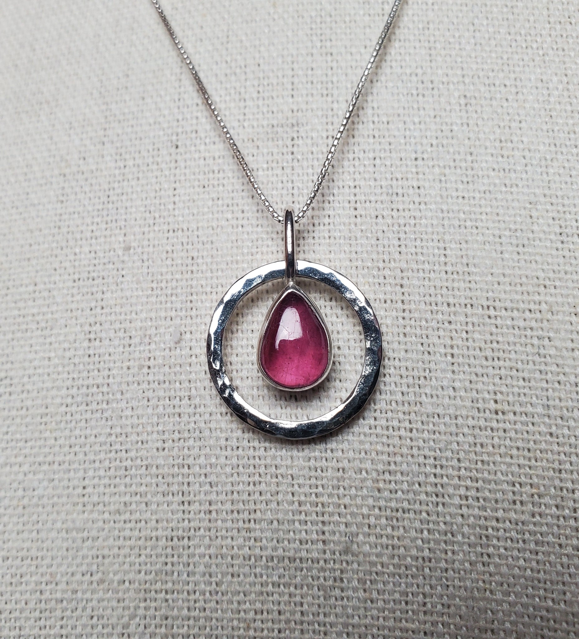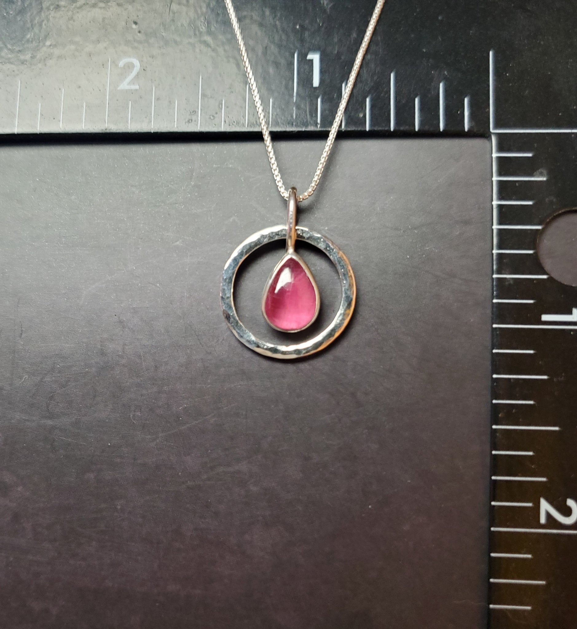 I've been saving this pink sapphire for such a long time and I'm so happy to finally see it set, and how beautifully it came together. The front has a hammered texture finish and the circular frame can spin through the bail. The backside has "this must be the place" and "I can't tell one from the other- did I find you, or you find me" done in a very challenging 1mm sized font. I just couldn't love it more!